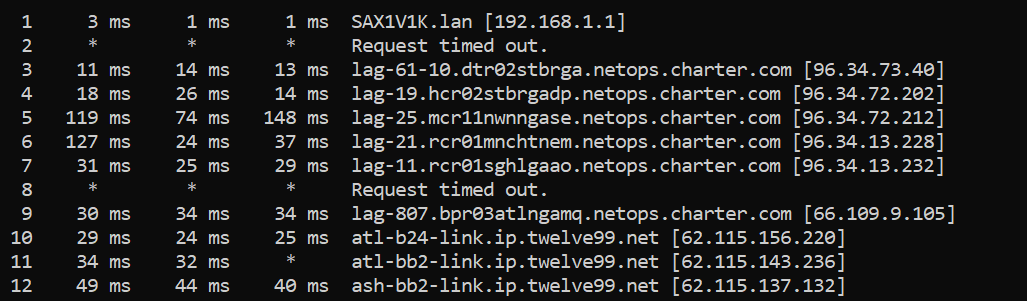 @Edward_T I’ll run a continuous ping while playing at each hop to see if something else stands out. I zeroed in on this based on the initial tracert results. I don’t want to waste a technicians time coming out if my immediate area is clear