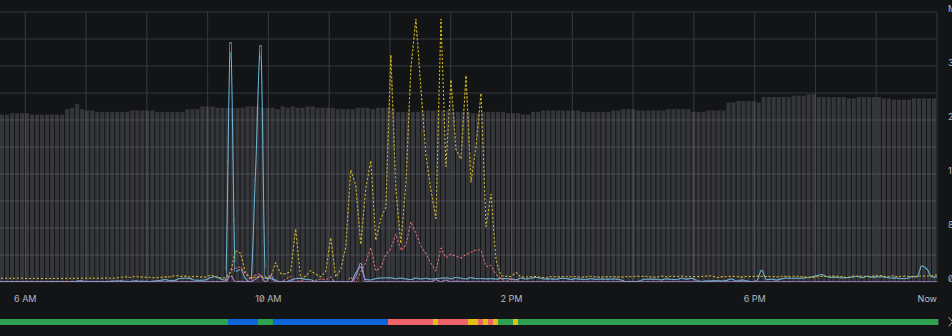 Today. Anything other then green is bad. My wife is a remote worker. This does not seem to be getting better.